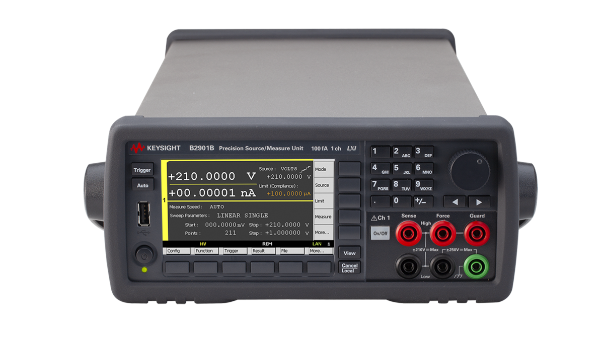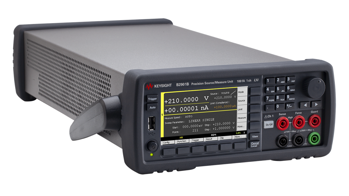 Keysight B2900 系列精密型電源量測設備(SMU)以合理的價格提供卓越的效能和易用性。 這些輕巧的桌上型 SMU 可協助您快速執行各種需要高解析度和準確度的電流電壓量測。 透過親切易用的彩色 LCD 圖形介面,您無需改變連接便可輕鬆查看量測結果。